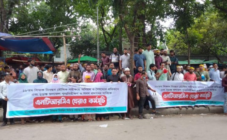 আন্দোলনকারীরা মিছিল নিয়ে বেসরকারি শিক্ষক নিবন্ধন ও প্রত্যয়ন কর্তৃপক্ষ (এনটিআরসিএ) ভবন ঘেরাও করেন। তাঁদের অভিযোগ, মৌখিক পরীক্ষায় উত্তীর্ণ না হওয়া ২৩ হাজার প্রার্থীকে নাকি ইচ্ছেকৃতভাবে ফেল করানো হয়েছে।