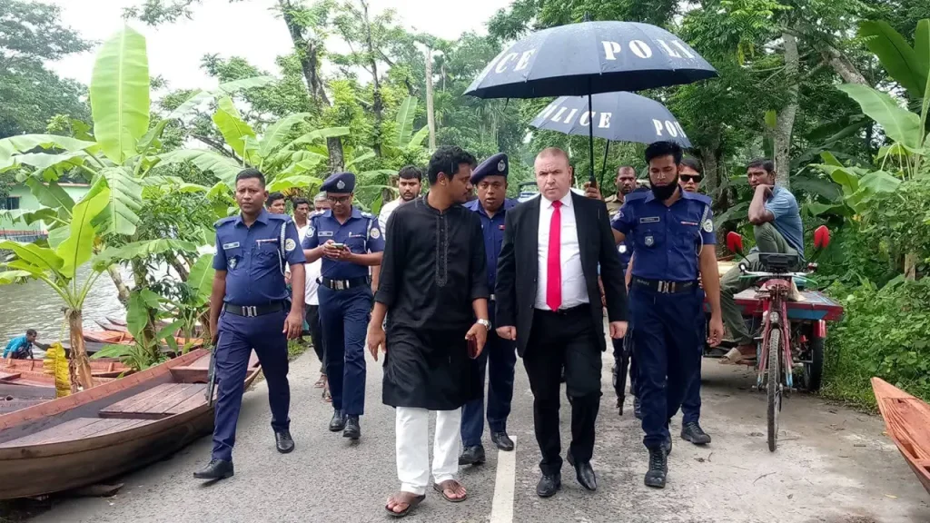 During the visit, he also went to the Charchina Darbar Sharif and performed the Friday (Jummah) prayers there. He was accompanied by Nesharabad's Assistant Commissioner (Land) Raihan Mahamud, Assistant Superintendent of Police Sabiha Mehebuba, and Officer-in-Charge Boni Amin.