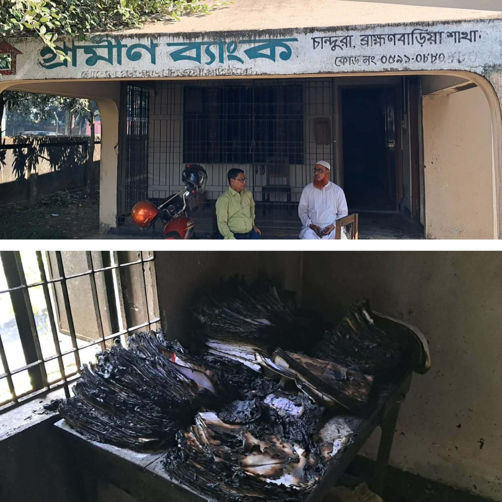 A mysterious fire broke out at the Grameen Bank branch office in Chandura Bazar, Bijoynagar Upazila, Brahmanbaria. On Tuesday, November 11, late at night, miscreants set the office building on fire, completely burning it down.