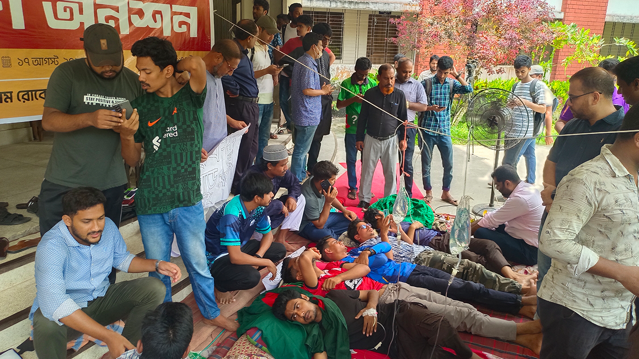রোববার (১৭ আগস্ট) রাত ১২টার দিকে সমাজবিজ্ঞান বিভাগের ১৬তম ব্যাচের জাহিদ হাসান জয় এবং দুর্যোগ ব্যবস্থাপনা বিভাগের ১৪তম ব্যাচের মাহিদুল ইসলাম মাহিদ ও গণযোগাযোগ ও সাংবাদিকতা বিভাগের ১৪তম ব্যাচের রুম্মানুল ইসলাম রাজ অসুস্থ হয়ে পড়েন। বিশ্ববিদ্যালয় প্রশাসন তাদের হাসপাতালে নেওয়ার জন্য অ্যাম্বুলেন্স পাঠালেও তারা রাজি হননি। পরে অনশনস্থলেই তাদের চিকিৎসা দেওয়া হয়।
