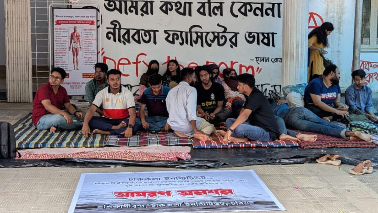 চট্টগ্রাম বিশ্ববিদ্যালয়ের নয় শিক্ষার্থী সাত দফা দাবিতে ৪৮ ঘণ্টা ধরে আমরণ অনশন চালাচ্ছেন। শিক্ষার্থীরা অধিকার সচেতনতা ভিত্তিক আন্দোলনের অংশ হিসেবে এই কর্মসূচি পালন করছে। দীর্ঘক্ষণ অনশনে থাকার ফলে ৯ জনের মধ্যে ৩ জন অসুস্থ হয়ে পড়েছেন এবং তাদের মেডিকেল সেন্টারে চিকিৎসা দেওয়া হচ্ছে।