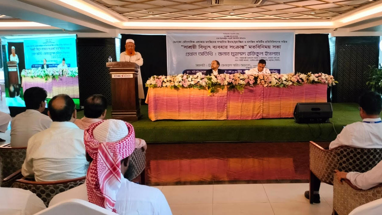 A discussion meeting on ‘Efficient Electricity Usage’ organized by Dhaka Electric Supply Company Limited (DESCO) was held on Thursday at a convention hall in the capital. Imams, muezzins, and representatives of mosque committees from areas under DESCO’s jurisdiction attended the meeting.