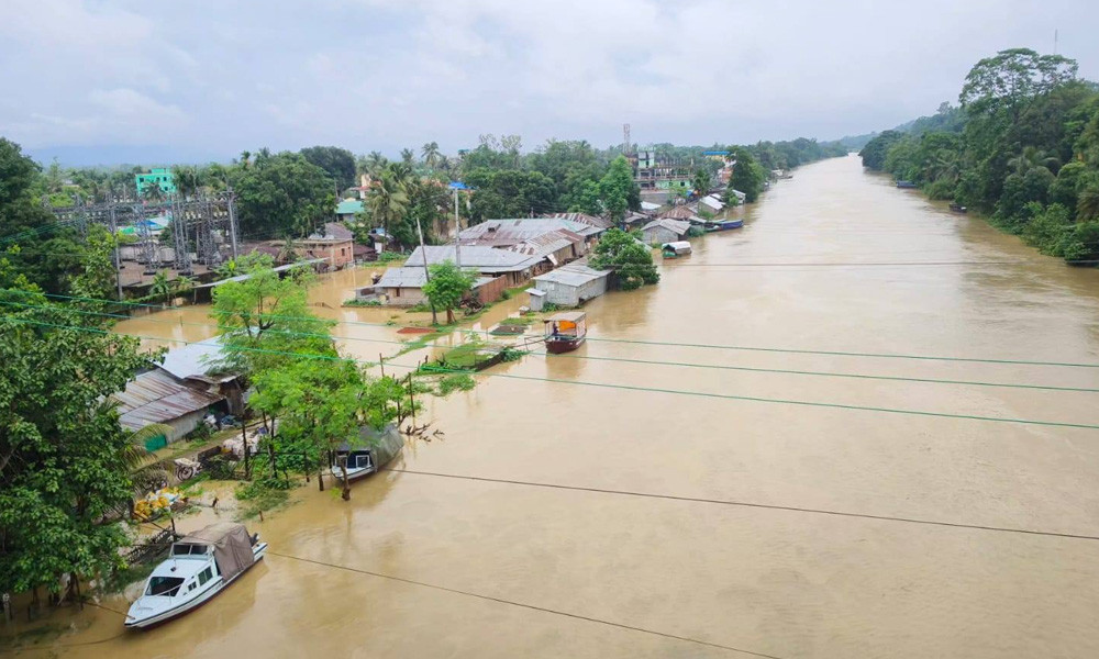 Around 2,500 families in Rangamati Sadar, Baghaichar, and Langadu upazilas are stranded, with 103 families taking shelter in seven relief centers. Additionally, the BSCIC Industrial Estate in Manikchhari has been submerged, with water still covering three roads, disrupting transportation of goods.