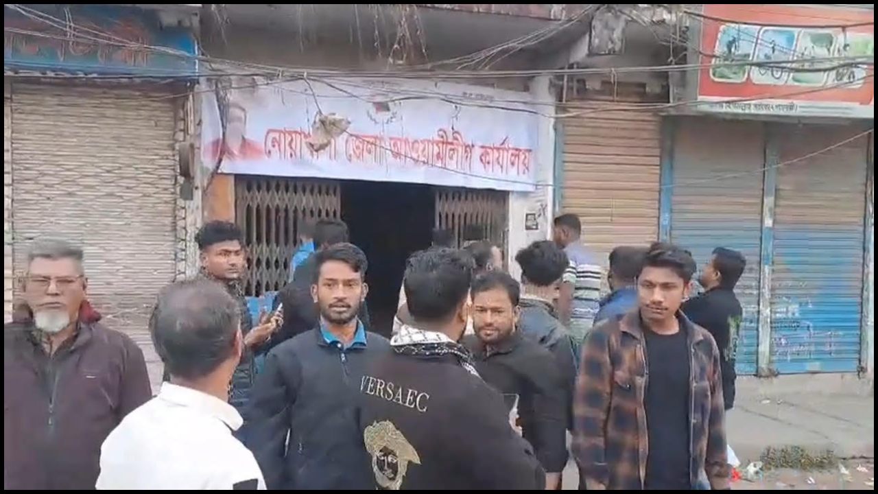 A video circulating on social media showed several people holding a banner reading “Noakhali District Awami League Office” while chanting slogans. An elderly person was also seen with the group. After hanging the banner, they quickly dispersed.