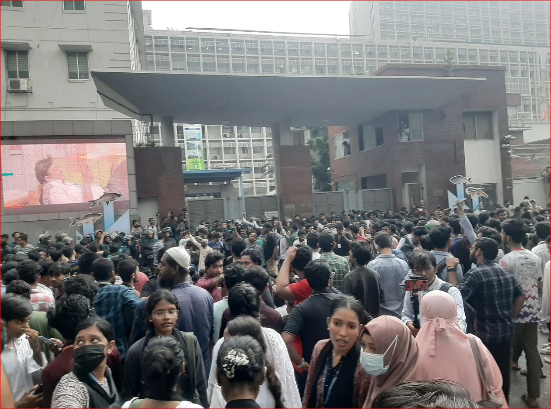 বেলা আড়াইটার দিকে বিক্ষুব্ধ শিক্ষার্থীরা মিছিল নিয়ে সচিবালয়ের ১ নম্বর গেটের সামনে এসে জড়ো হন। তাঁরা ‘আমার ভাই মরল কেন?’, ‘ভুয়া প্রশাসন চাই না’ ইত্যাদি স্লোগানে গোটা এলাকা মুখর করে তোলেন। বিক্ষোভে শিক্ষার্থীরা শিক্ষা উপদেষ্টা অধ্যাপক সি আর আবরার এবং শিক্ষাসচিবের পদত্যাগ দাবি করেন।