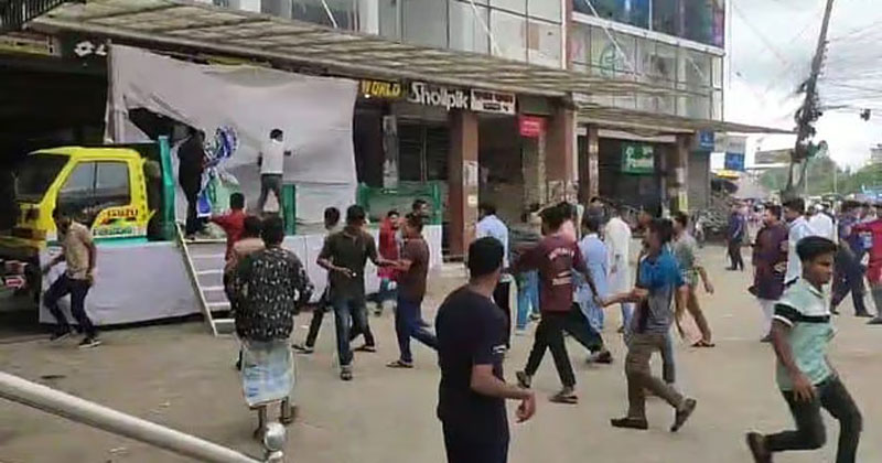Eyewitnesses reported that around 3:30 PM, NCP leaders were preparing for a rally on a makeshift stage built atop a truck. At that moment, BNP and Jatiyatabadi Chhatra Dal (BNP’s student wing) activists arrived at the scene wielding sticks, vandalized the stage, broke the truck’s windshield, and tore down banners. During the attack, NCP members were forced to retreat from the area.