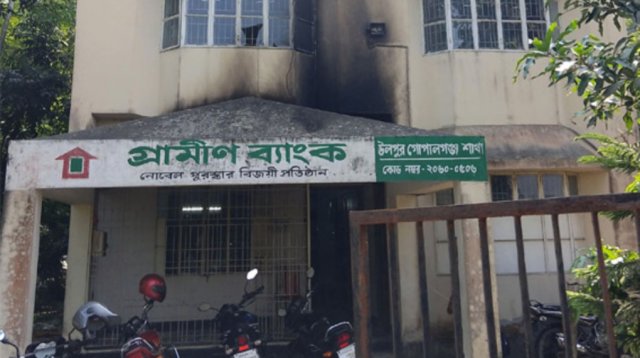 Meanwhile, around 2 a.m., the attackers threw 5–6 petrol bombs at the Ulpur Grameen Bank branch. Although one bomb caught fire, the bank staff quickly extinguished it.