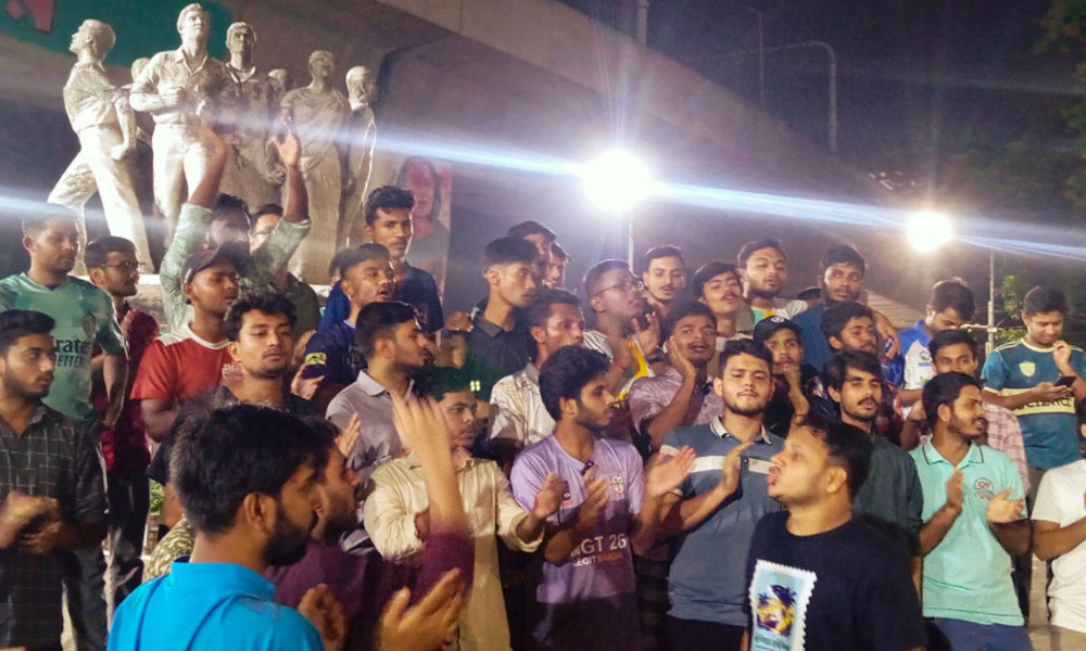 শনিবার (৯ আগস্ট) রাত পৌনে ১১টার দিকে বিশ্ববিদ্যালয়ের সন্ত্রাসবিরোধী রাজু ভাস্কর্যের পাদদেশে সমাবেশ অনুষ্ঠিত হয়। এর আগে ভিসি চত্বর থেকে বিক্ষোভ মিছিল বের করা হয়। সমাবেশ থেকে শিক্ষার্থীরা ঘোষণা দেন, আগামীকাল রবিবার (১০ আগস্ট) সকাল ১০টায় শাহবাগে ব্লকেড কর্মসূচি পালন করা হবে।