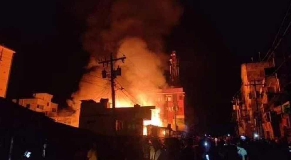 A fire broke out in a market located on Station Road in Hajiganj Upazila, Chandpur, causing at least six shops to burn down. The incident occurred Friday (27 February) at night. Upon receiving the news, two units of the Fire Service reached the scene and controlled the fire after about one and a half hours.