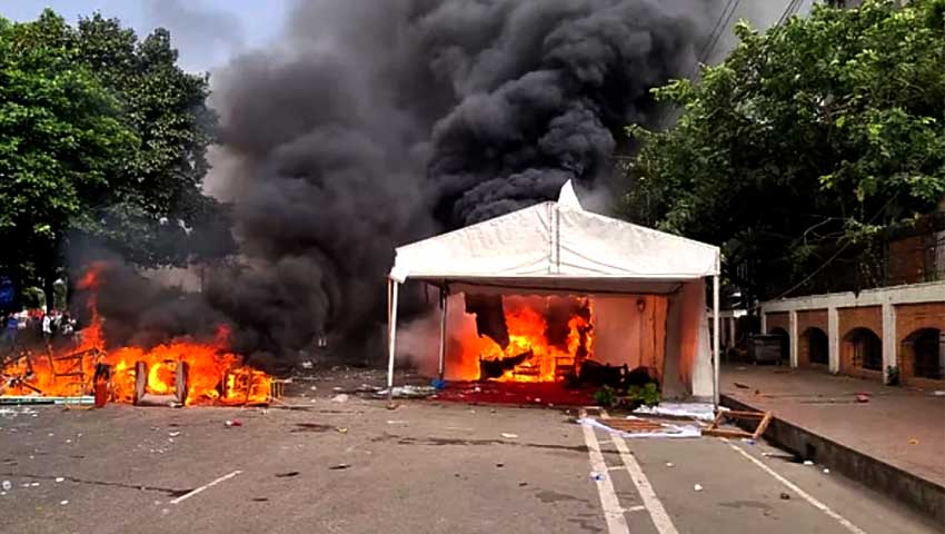 এ সময় সংসদ ভবনের দক্ষিণ প্লাজায় উত্তেজনা ছড়িয়ে পড়লে পুলিশ পরিস্থিতি নিয়ন্ত্রণে আনার চেষ্টা করতে থাকে। সংঘর্ষের সময় বেশ কয়েকটি বিস্ফোরণের শব্দ শোনা যায় এবং মানিক মিয়া অ্যাভিনিউ এলাকায় আগুন জ্বলতে দেখা যায়। আইনশৃঙ্খলা রক্ষাকারী বাহিনী পরিস্থিতি নিয়ন্ত্রণে রাখতে সাউন্ড গ্রেনেড নিক্ষেপ করে।