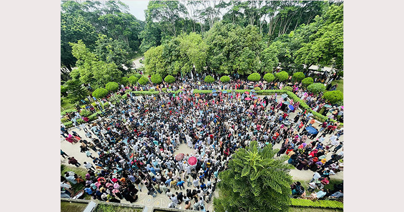 The protest began at 11 am on Saturday in front of the university administration building with Sajid’s batchmates from Convocation 36. Students from Projolito 35 batch, Inquilab 36 batch, and leaders of various student organizations also joined the demonstration.