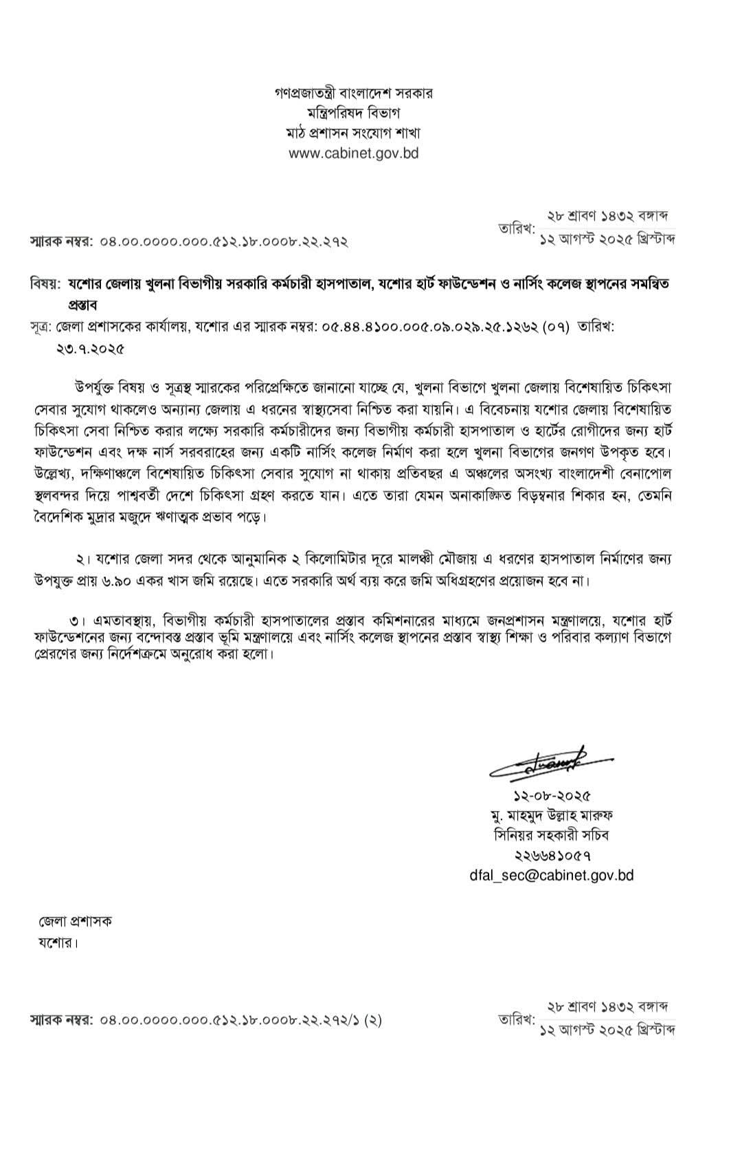 যশোরবাসীর জন্য বড় সুসংবাদ এসেছে। যশোরের সম্মানিত জেলা প্রশাসক মো: আজাহারুল ইসলাম-এর উদ্যোগে যশোর-বেনাপোল মহাসড়কের পাশে মালঞ্চীতে একযোগে তিনটি স্বাস্থ্যসেবামূলক প্রতিষ্ঠান নির্মাণের অনুমোদন দিয়েছে মন্ত্রিপরিষদ বিভাগ।